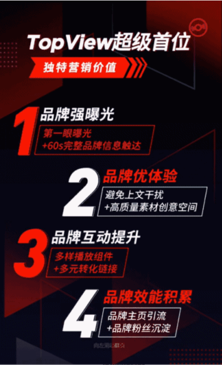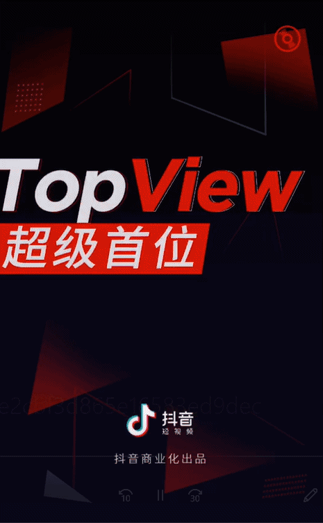 这类广告算是抖音首创的一种曝光形式,它的主要特点是以开屏加首条信息流视频的方法在视频的前3秒超级曝光,然后在第4秒的时候可以无缝衔接长达60秒的一个品牌信息,从而达到营销的目的,这样的广告形式可以完成一种沉浸式的触达。如下图所示: